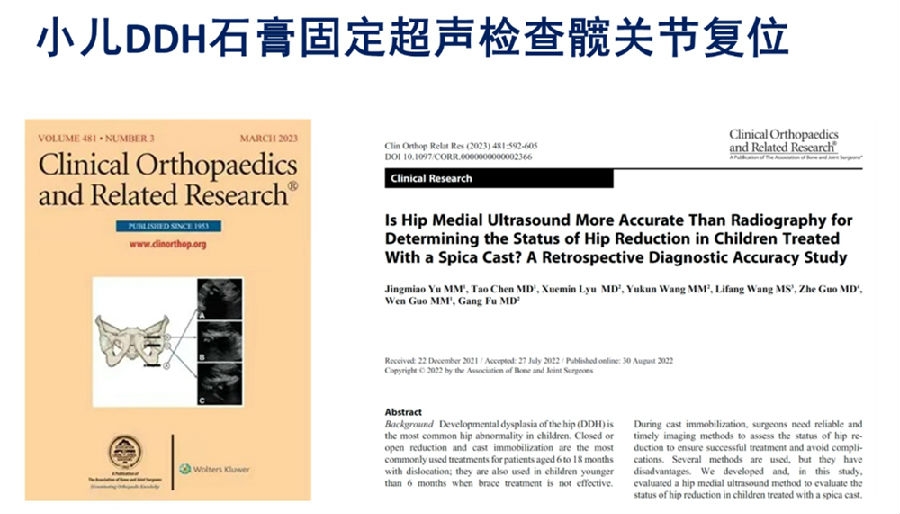[56] YU J, CHEN T, LYU X, et al. Is Hip Medial Ultrasound More Accurate Than Radiography for Determining the Status of Hip Reduction in Children Treated With a Spica Cast? A Retrospective Diagnostic Accuracy Study[J]. Clin Orthop Relat Res, 2023,481(3):592-605.