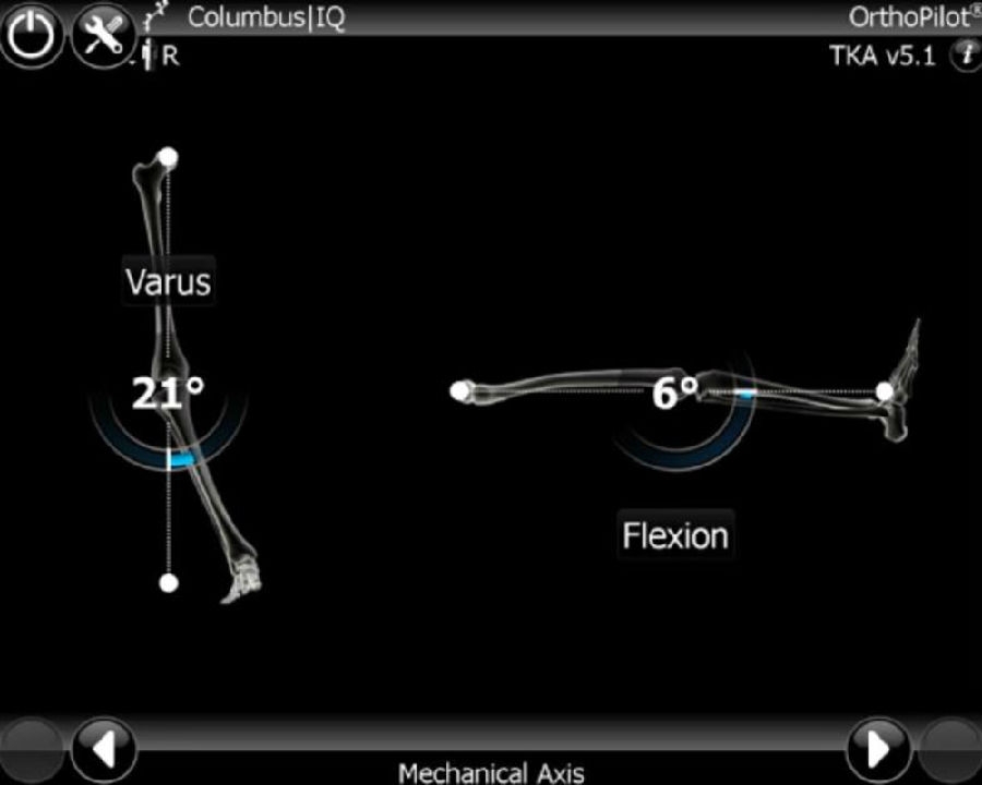 研究表明这些TKA对线技术的应用能够取得良好的临床疗效,但是应用于严重畸形病例仍具有一定的局限性。原因在于aMA、rKA、AA和FA这四类对线技术的目标下肢力线范围在0°±3°内,仅通过截骨矫正畸形程度有限,仍需适当松解软组织以恢复屈伸间隙的平衡。此外,KA对线技术仅通过截骨进行解剖重建,术后残留畸形度数往往超出0°±3°范围,而目前下肢力线的安全范围尚无绝对统一标准。