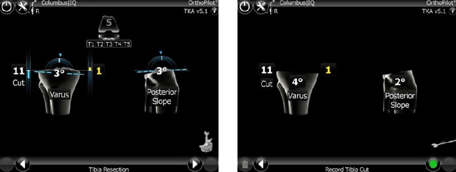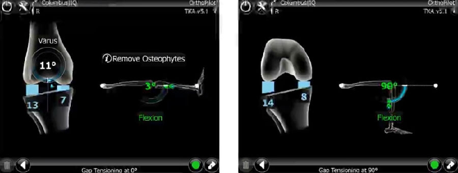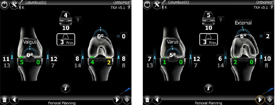 笔者团队基于导航下TKA,首次提出了一种新的对线技术,即调整限制性运动学对线(arKA)。通过rKA和aMA截骨及调整假体安放位置,以恢复关节线高度和生理性内翻,且采用最佳平衡概念实现内外屈伸间隙平衡。该技术是从运动学对线基础上衍生而来,胫骨侧、股骨侧截骨均做调整,股骨侧截骨理念同aMA,胫骨侧截骨理念同rKA,通过单纯截骨,避免松解侧副韧带来实现软组织平衡。