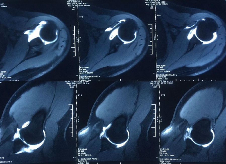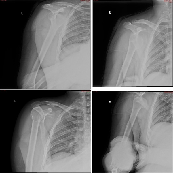 典型病例,王XX,男性,15岁。主诉右肩外伤疼痛、活动受限1月。既往半年前有肩关节脱位病史。