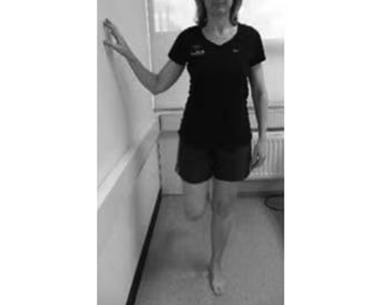 受试者站在墙边,健侧靠近墙、患侧远离墙,健侧的手伸到与肩齐高的位置扶着墙以保持身体的平衡,然后将健侧下肢抬起,使骨盆保持中立,膝关节屈曲至90°,在这个位置保持30s。阳性结果是患者在这30s内再次出现患侧髋关节外侧疼痛。