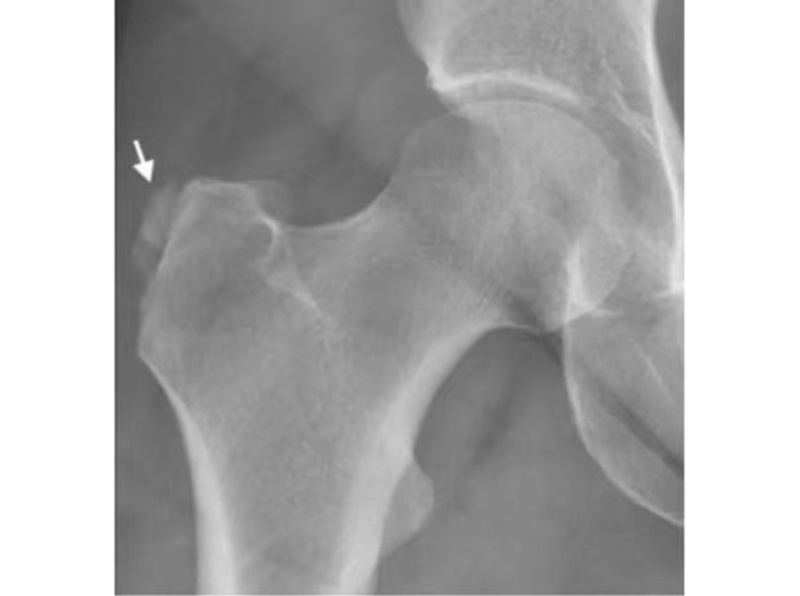 X线和CT可以清晰显示臀肌腱走行区的钙化灶进而提示本病,CT多平面重组图像可用于骨盆各种径线进而排除部分鉴别诊断。骨盆X线检查可以鉴别其他疾病如髋关节退行性疾病、转子撕脱骨折、骨膜肿瘤病变、股骨近端继发性恶性肿瘤等。
