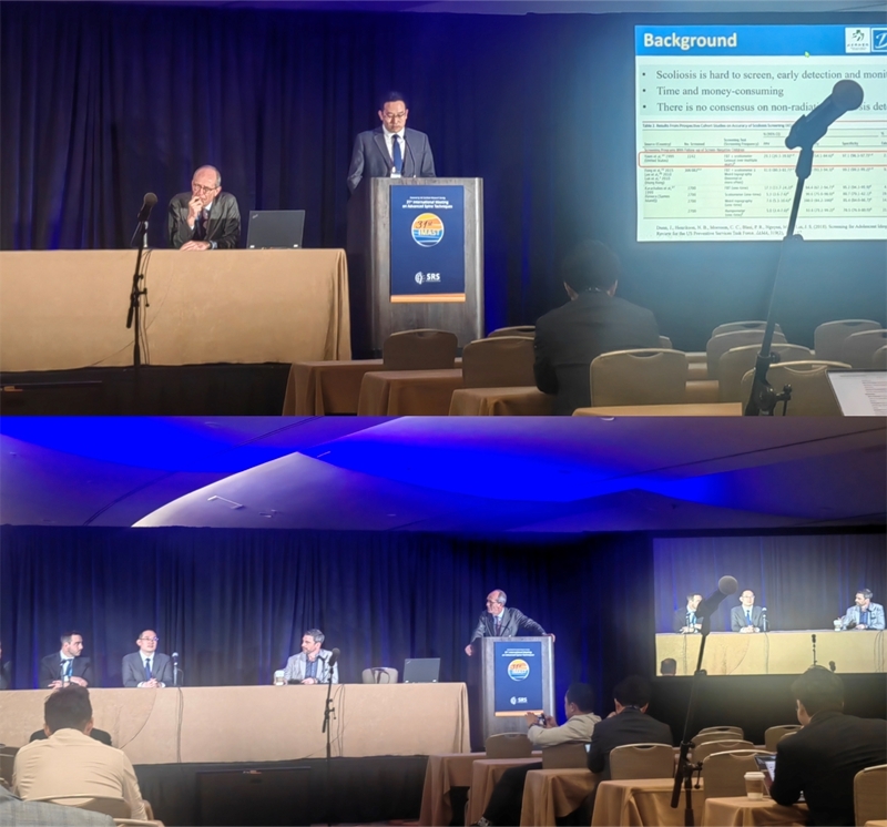 吴南教授报告了题为“A Newly-Designed wearable Device with artificial intelligence Detects Scoliosis and Monitor Disease Progression”的最新研究成果。在仉建国教授带领下,该研究创新性地研发了一种新型可穿戴设备,结合最新的人工智能技术,用于快速检测脊柱侧凸畸形并监测疾病进展。