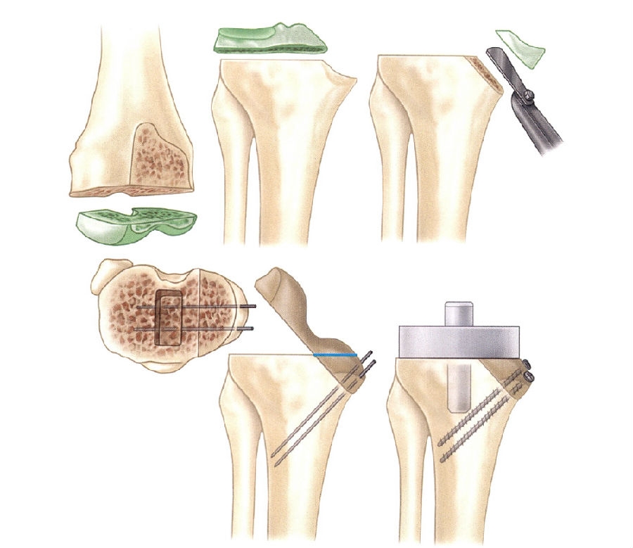 在胫骨上表面仔细地再次截骨,做出一个平整的表面。