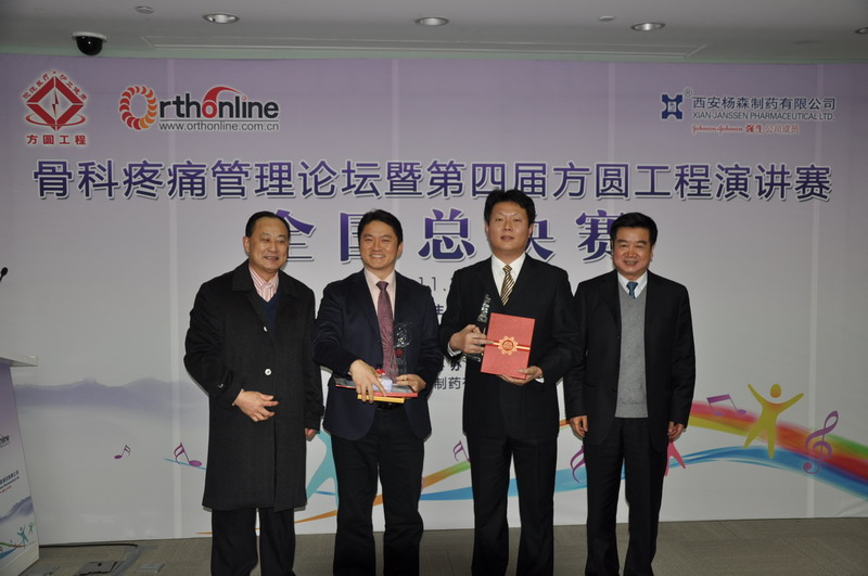 2011年11月30日下午,第四届COA大会召开前一天,第四届“方圆工程”演讲赛总决赛在北京激情上演。2011年由中华医学继续教育视听杂志编辑部、骨科在线主办“骨科疼痛管理论坛暨第四届方圆工程演讲赛”已在全国14个城市召开,共有121名骨科医师参加初赛,经过初赛和半决赛的激烈角逐有6名选手进入了全国总决赛,有2名选手分别获得在骨科在线上评选出的“最佳风采奖”、“最佳幻灯制作奖”也同时进入到决赛。