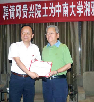 5月29日,中国工程院院士、我国著名骨科专家、北京协和医院骨科主任邱贵兴教授从湘雅医院院长陈方平教授手中接过聘书,成为我校湘雅医院客座教授。湘雅医院院长陈方平指出,邱贵兴院士的加盟,必将促进湘雅医院骨科学科的建设与发展,显凸骨科学科特色品牌。