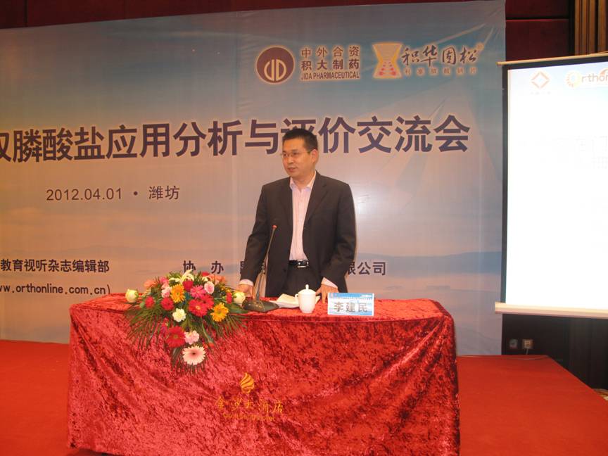 方圆论坛——双膦酸盐应用分析与评价交流会潍坊站会议于2012年4月1日下午在山东省潍坊市召开。本次会议是2012年方圆论坛——双膦酸盐应用分析与评价交流会的第一站。会议由山东省医学会骨科学分会主任委员、山东大学齐鲁医院骨科及骨肿瘤科主任李建民教授主持并致开幕词,他感谢中华医学继续教育视听杂志编辑部和骨科在线(http://www.orthonline.com.cn)搭建了方圆论坛这样一个平台,使骨科医生有机会聚在一起,共同研讨双膦酸盐在治疗骨质疏松中的作用,了解双膦酸盐药物使用中可能出现的风险,以保障临床用药安全,加强用药规范。山东省医学会骨科学分会骨质疏松学组组长、山东大学齐鲁医院创伤骨科主任陈允震教授,从骨质疏松症的定义和分类、临床表现、诊断标准、治疗方法及常用药物等方面,介绍了双膦酸盐在治疗骨质疏松中的重要地位。山东省医学会骨科学分会秘书、山东大学齐鲁医院骨外科刘培来教授从双磷酸盐的疗效评价指标、双膦酸盐对于降低骨折风险的作用等方面,介绍了如何评价双膦酸盐的疗效。潍坊市骨科专业委员会常务委员,潍坊市人民医院骨关节外科副主任张益民教授从关注双膦酸盐药物的严重不良反应——SFDA通告、双膦酸盐用药关注的重点问题、双膦酸盐药物的不良反应、如何正确看待双膦酸盐的不良反应和疗效之间的关系等方面,介绍了双膦酸盐类药物防治骨质疏松症的安全性。潍坊市医学会骨科专业委员会副主任委员、潍坊医学院附属医院骨外科副主任戴志刚教授介绍了双膦酸盐在骨科的应用。此外,青岛大学医学院附属医院关节外科主任孙康教授和潍坊市人民医院骨外科主任姜鑫教授担任评论专家,对演讲进行了精辟、独到、深刻的点评,并与与会代表进行了互动。