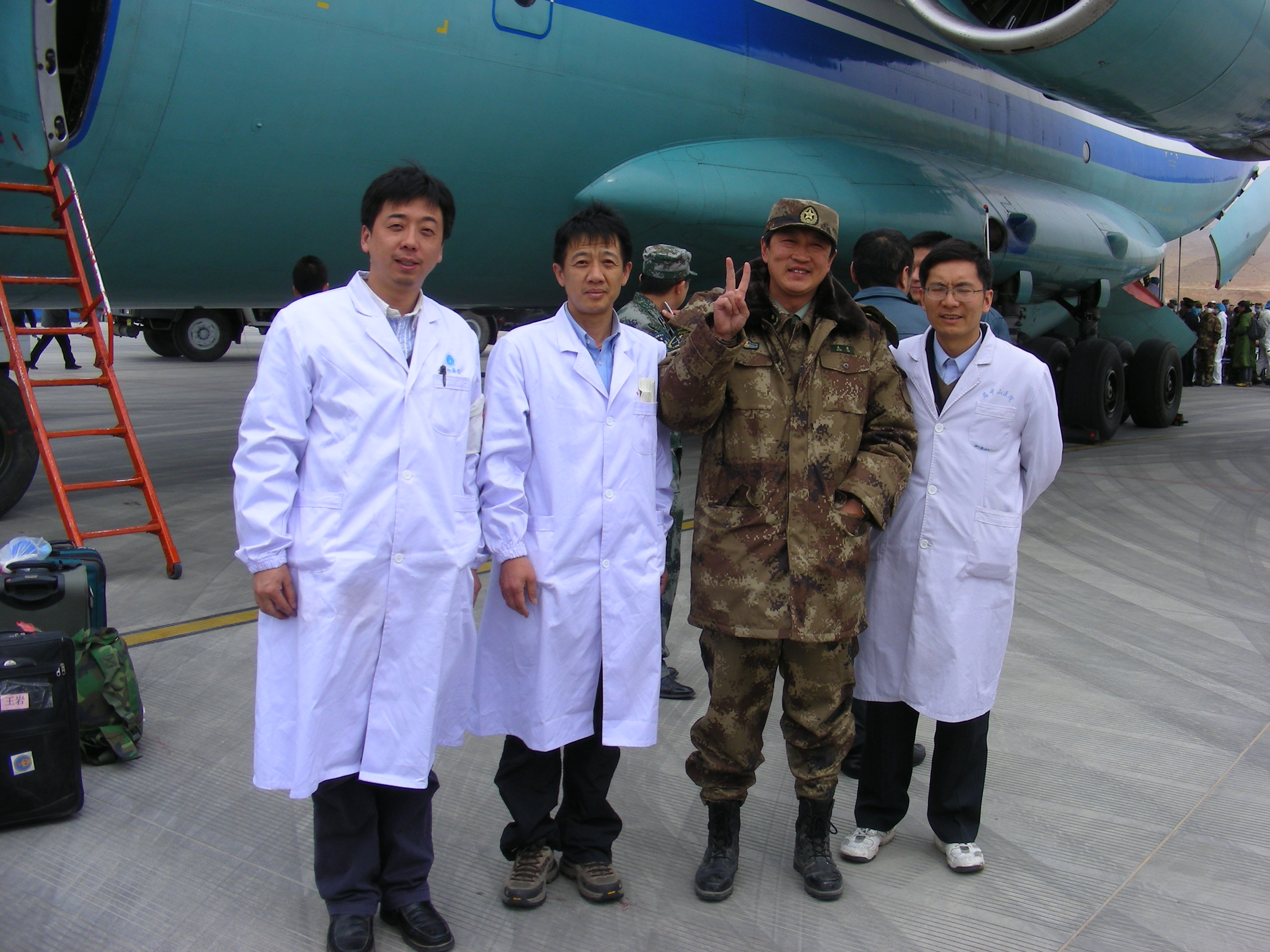 由于在玉树地震救援中表现突出,这张照片中的王岩教授(左三)与叶哲伟副教授(左一)均受到中共中央、国务院、中央军委的联合表彰,被授予“全国抗震救灾模范”光荣称号。在一张战地照片中,同时出现两位全国抗震救灾英模。这也成了青海玉树地震救援的一段美谈。 王岩教授(左三)与叶哲伟副教授(左一)在玉树灾区合影