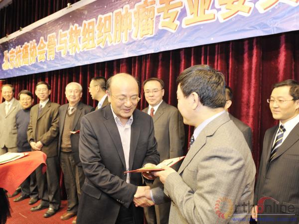 会上,北京抗癌协会理事长游伟程教授向每一位到会委员颁发了聘书,并与大家合影留念。游伟程理事长在致辞中表示,北京抗癌协会骨与软组织肿瘤专业委员会的成立将极大地推动学科的发展,进一步促进骨与软组织肿瘤规范治疗的推广,必将使广大患者进一步受益。