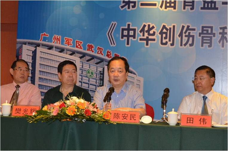 开幕式由湖北省骨科副主任委员、广州军区武汉总医院骨科主任蔡贤华教授主持。广州军区武汉总医院刘铁桥政委代表院方致欢迎辞,湖北省医学会张全炳书记与《中华创伤骨科杂志》总编、全国数字化专业委员会主任委员、第四军医大学西京医院骨科医院院长、博士生导师裴国献教授代表主办方致欢迎辞。湖北省骨科分会主任委员、华中科技大学附属同济医院院长、博士生导师陈安民教授代表省骨科学会致欢迎辞,中华医学会骨科分会候任主任委员、北京医学会骨科分会主任委员、北京积水潭医院院长、博士生导师田伟教授代表骨科分会致辞。出席开幕式并在主席台上就坐的还有:广州军区武汉总医院樊光辉副院长,河北省骨科学会主任委员、河北医科大学副校长、河北医科大学第三医院院长、河北省骨科研究所所长、《中华创伤骨科杂志》副总编辑、博士生导师张英泽教授,山东省医学会骨科学会主任委员、山东省立医院骨科医院院长、博士生导师周东生教授,全军科委会常委、全军创伤骨科中心主任、广州军区武汉总医院博士生导师陈庄洪教授,《中华创伤骨科杂志》编辑部主任、南方医大南方医院创伤骨科主任、博士生导师余斌教授。