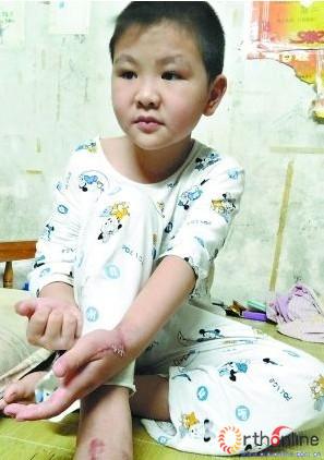 大理石坠下砸伤手脚男童无钱做康复治疗(图)