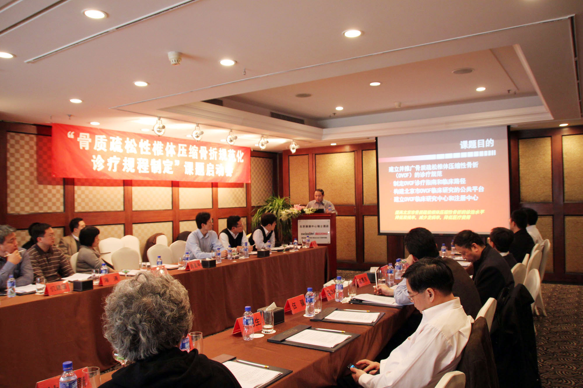 2011年3月16日,“骨质疏松性椎体压缩骨折规范化诊疗规程制定”课题启动会在京召开,此次会议由北京军区总医院骨科孙天胜教授主持,中华医学会骨科学分会前任主任委员邱贵兴院士也亲临现场,来自北京部分三甲医院的骨科科室主任翁习生教授、唐海教授、马远征教授、马华松教授及相关学科专家齐聚,共同探讨。