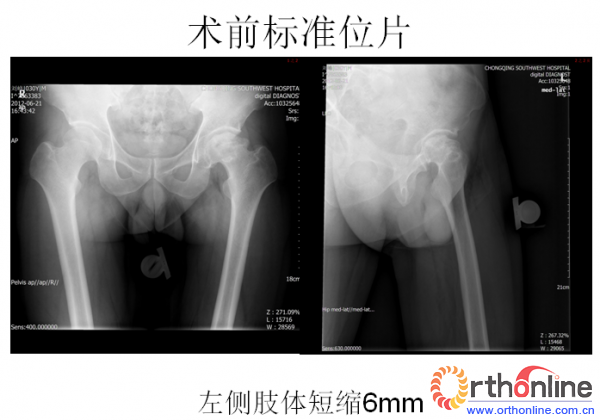 伸髋外旋20°,内旋10°,屈髋外旋20°, 内旋10°。内收及内外旋活动均伴疼痛。