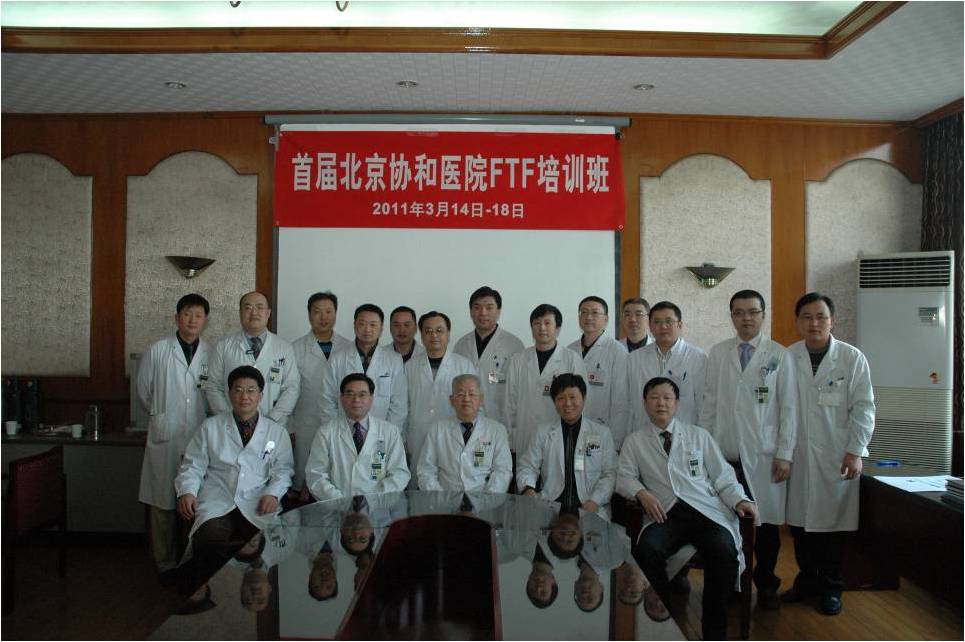 (首届北京协和医院FTF培训班结业照 前排右起 金今教授,翁习生教授,邱贵兴院士,林进教授,张保中教授 )