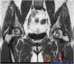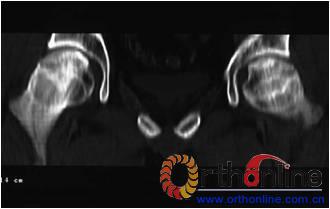 1.2 分期与分型 所有患者术前均行双髋MRI扫描(GE Sigma profile 1.5T T1WI和T2WI,部分患者尚加用T2WI压脂及STIR序列),双髋正位和蛙式位X线片,大多数患者也行双髋CT扫描,冠状位、轴位及矢状位二维重建。