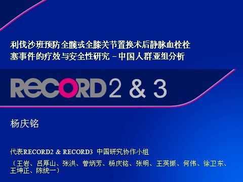 利伐沙班预防全髋或全膝关节置换术后静脉血栓栓塞事件的疗效与安全性研究-中…